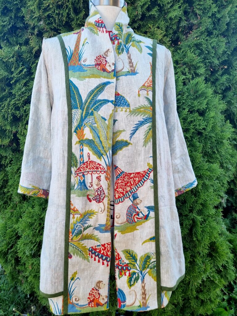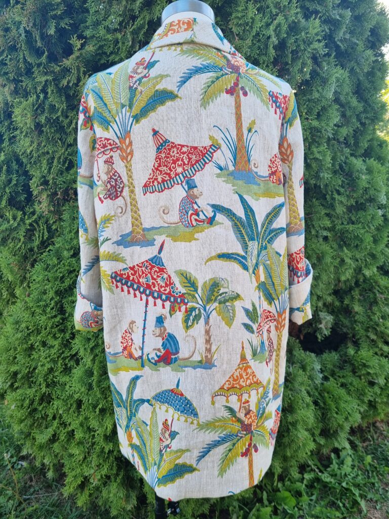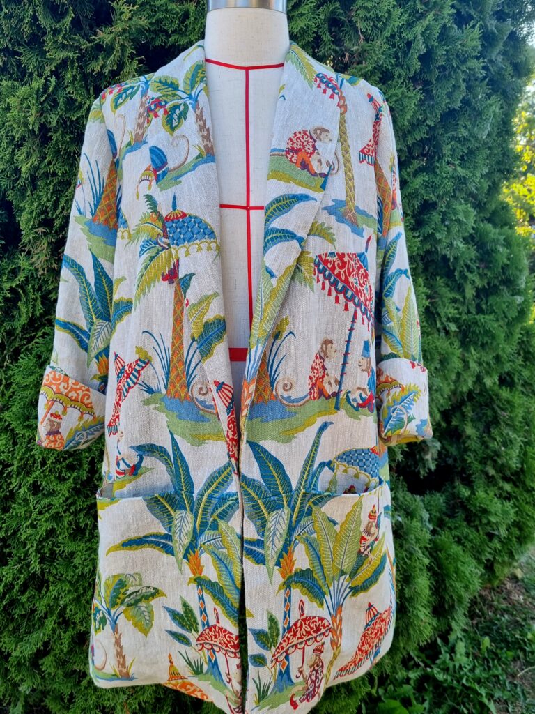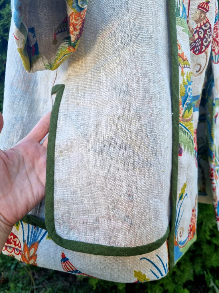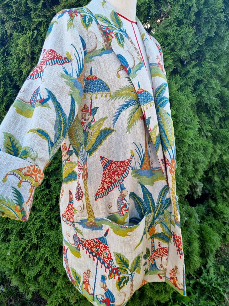 This was a labour of love if I may say so myself. I found this gorgeous designer upholstery linen at one of the Stitchfabrics pop-up show in Lincoln. It is a heavy weight fabric with luxurious texture, and it was so easy to work with. I fell in love with this quirky print straight away and I knew it would make a great jacket!