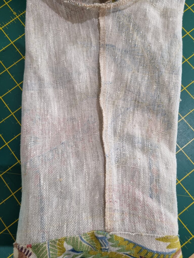 I steamed the fabric to allow it to shrink before cutting out. This linen is very ‘obedient’ and super easy to work with and press. Because the weave is so loose you would need to handle fabric as little as possible and overlock or bind the seams after cutting as soon as you can.